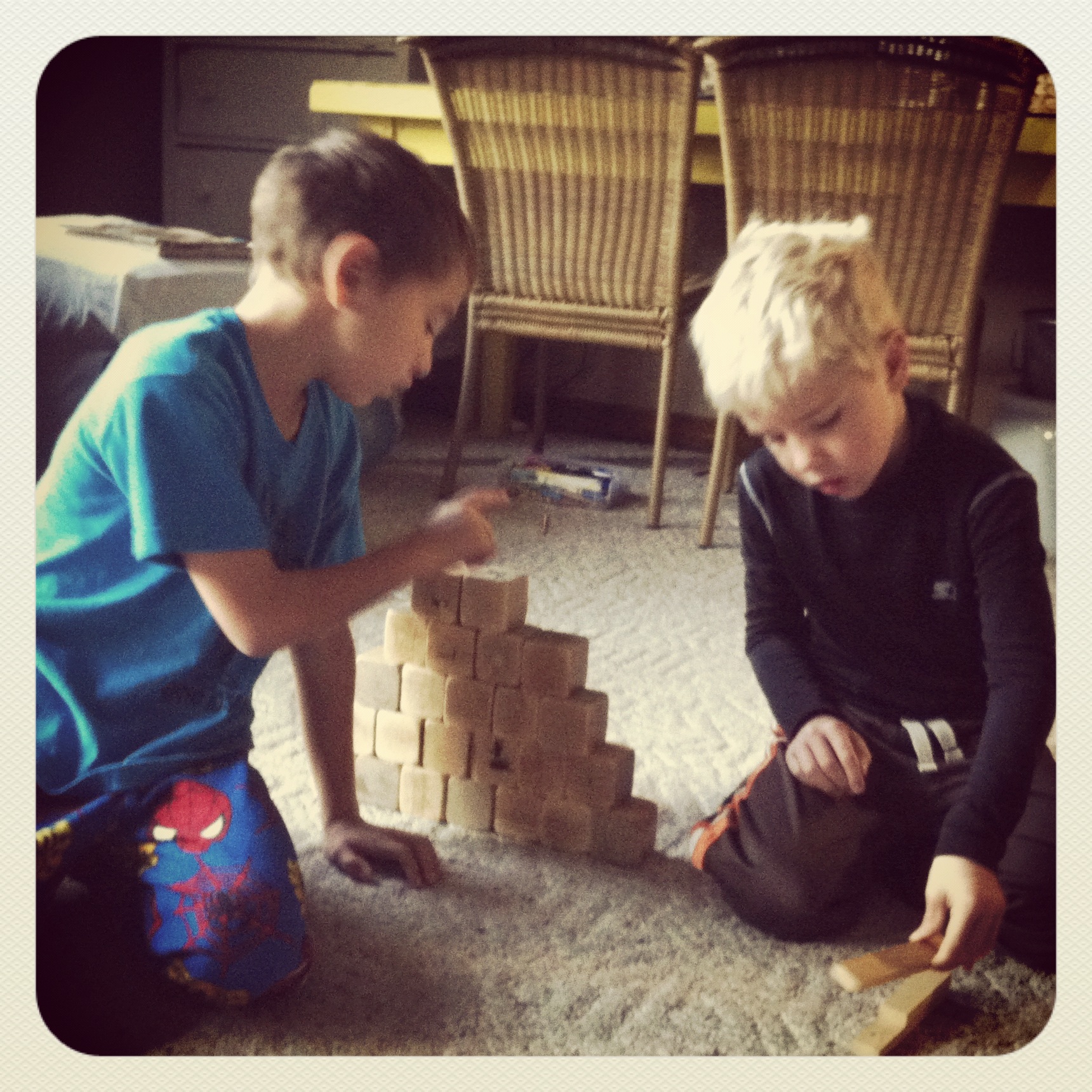 The kids built blocks for most of the morning.